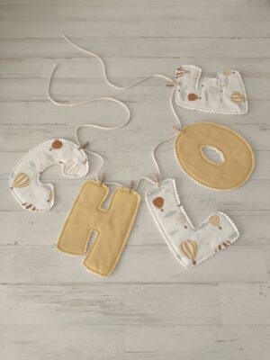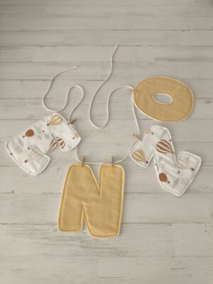 Guirnalda para decorar la habitación de tu peque. ¿Te imaginas cómo quedará el nombre de tu chiquitín en la habitación, junto al cambiador y la cuna? Pregúntame por otros estampados. Medidas de cada letra 15×15 cm aprox.