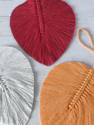 Hoja de macramé para decoración o para colgar. Medidas aproximadas: 10 x 15 cm. En la última foro, se muestran los colores disponibles.