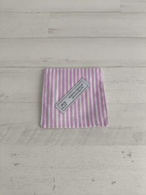 Marcapáginas de tela, estampado de flores lila. Medidas 8 x 8 cm.
