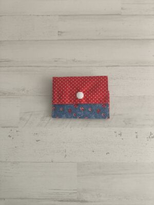 Tarjetero con estampado de vichy y flores. Medidas Tarjetero: 9 x 6 cm.