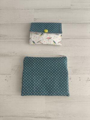 El precio original era: 22,00 €.20,00 €El precio actual es: 20,00 €.Pack de monedero y tarjetero con estampado de tela verde y plumas multicolores. Medidas monedero: 13,5 x 10,5 cm. Medidas tarjetero: 9 x 6 cm.