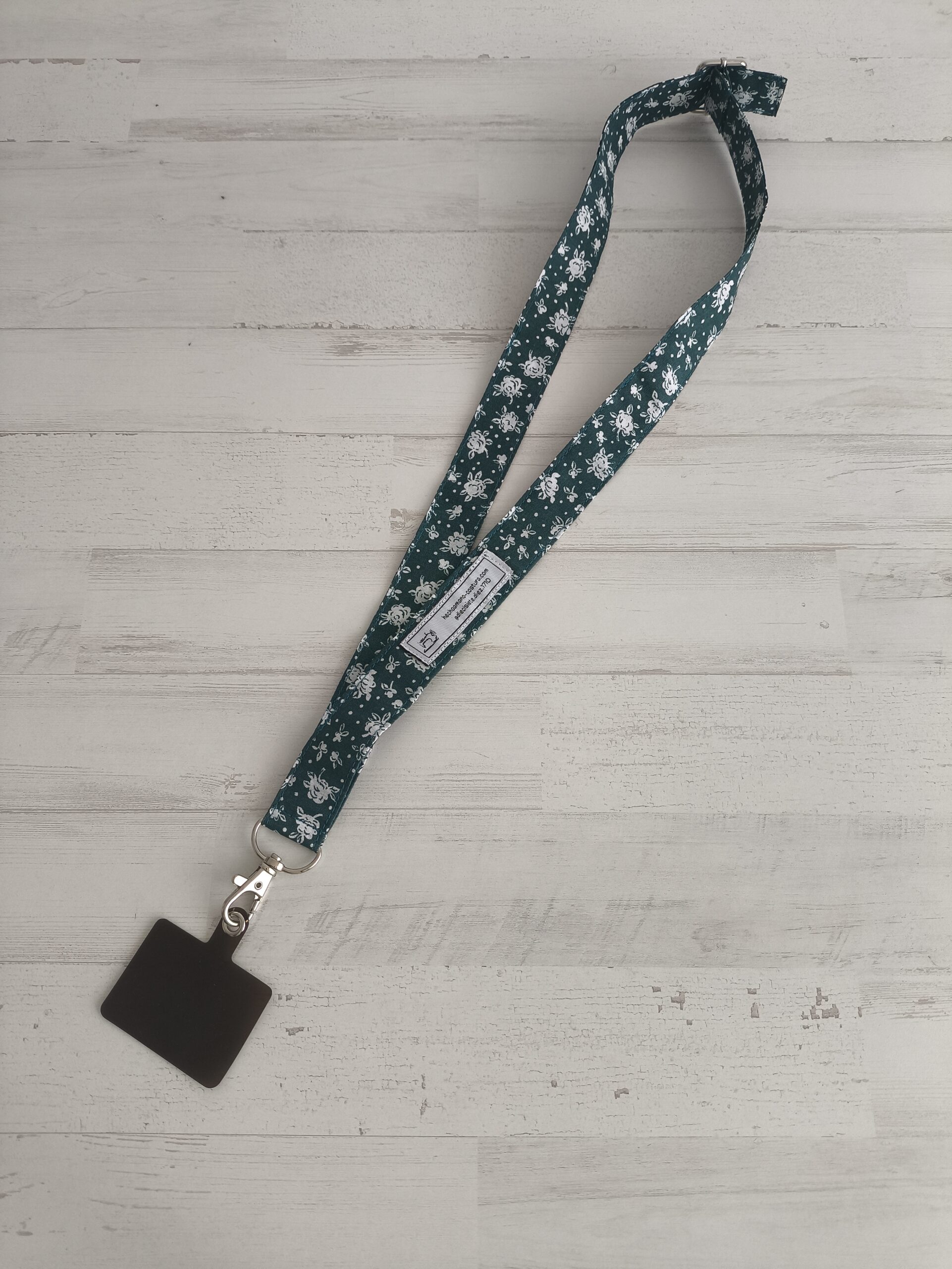 Cuelgamóvil verde oscuro y blanco