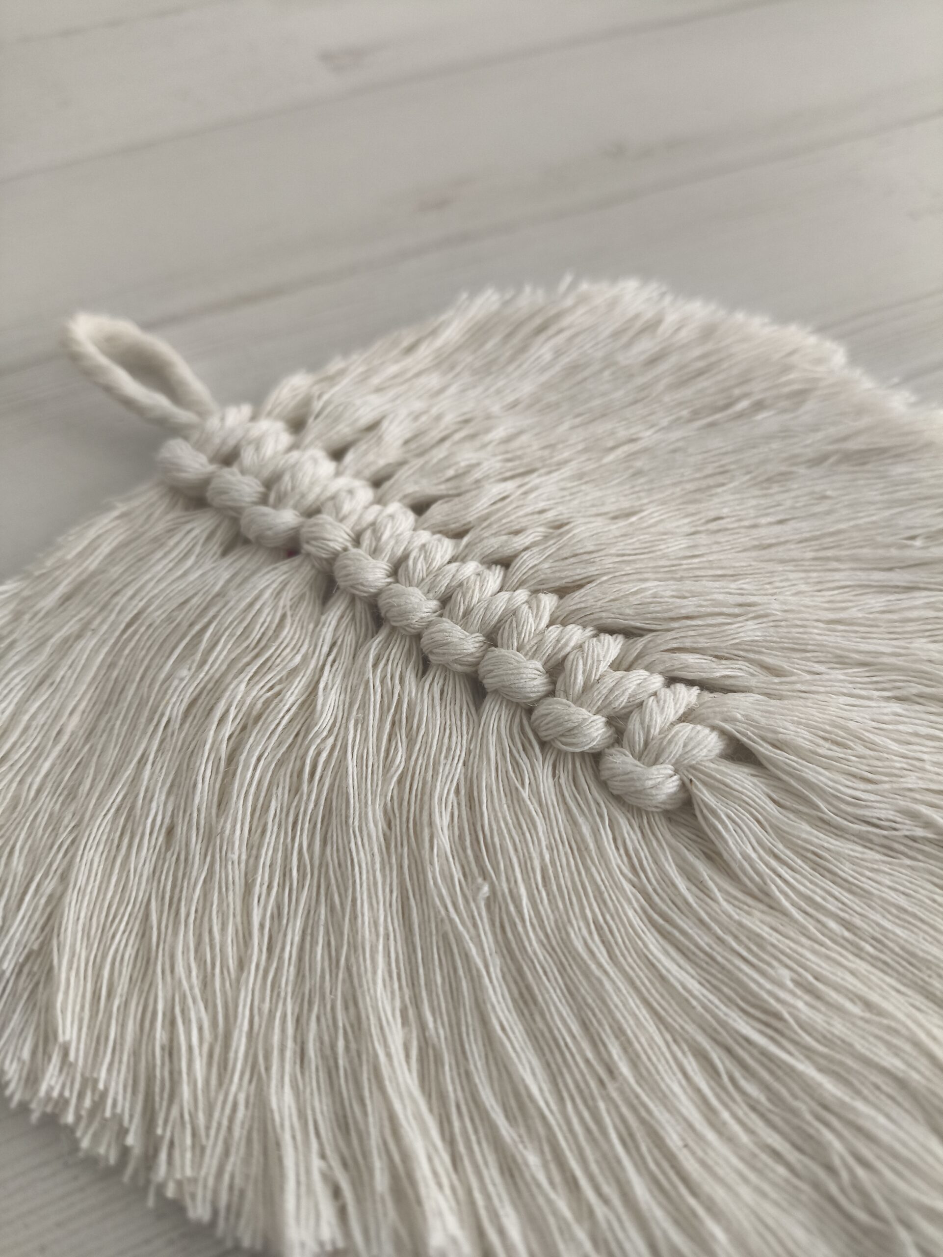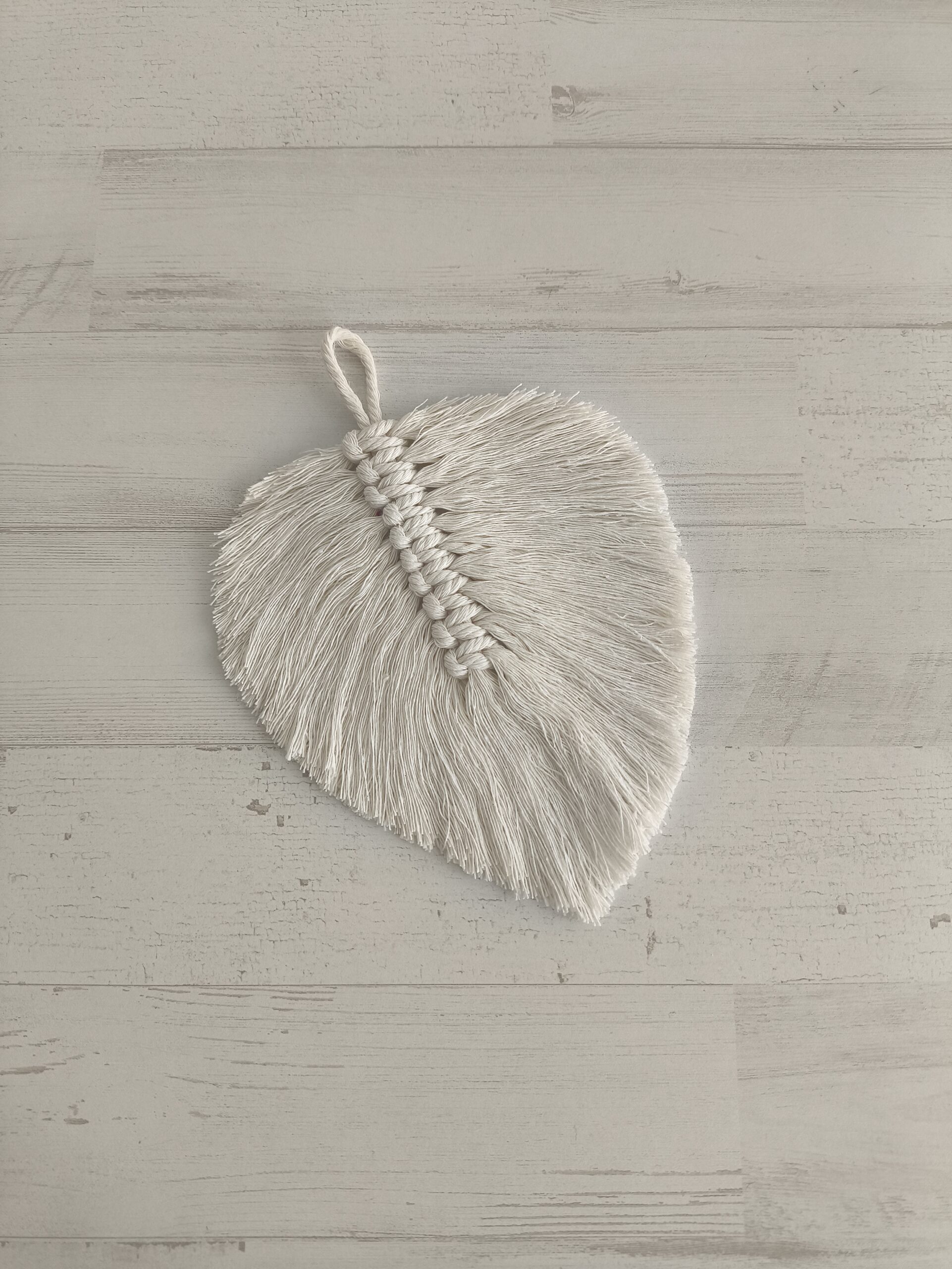 Hoja de macramé para decoración o para colgar.