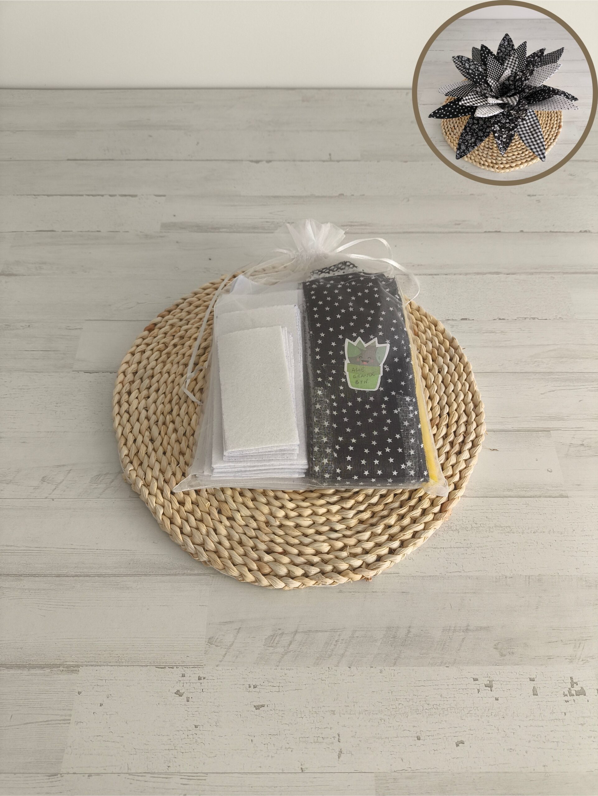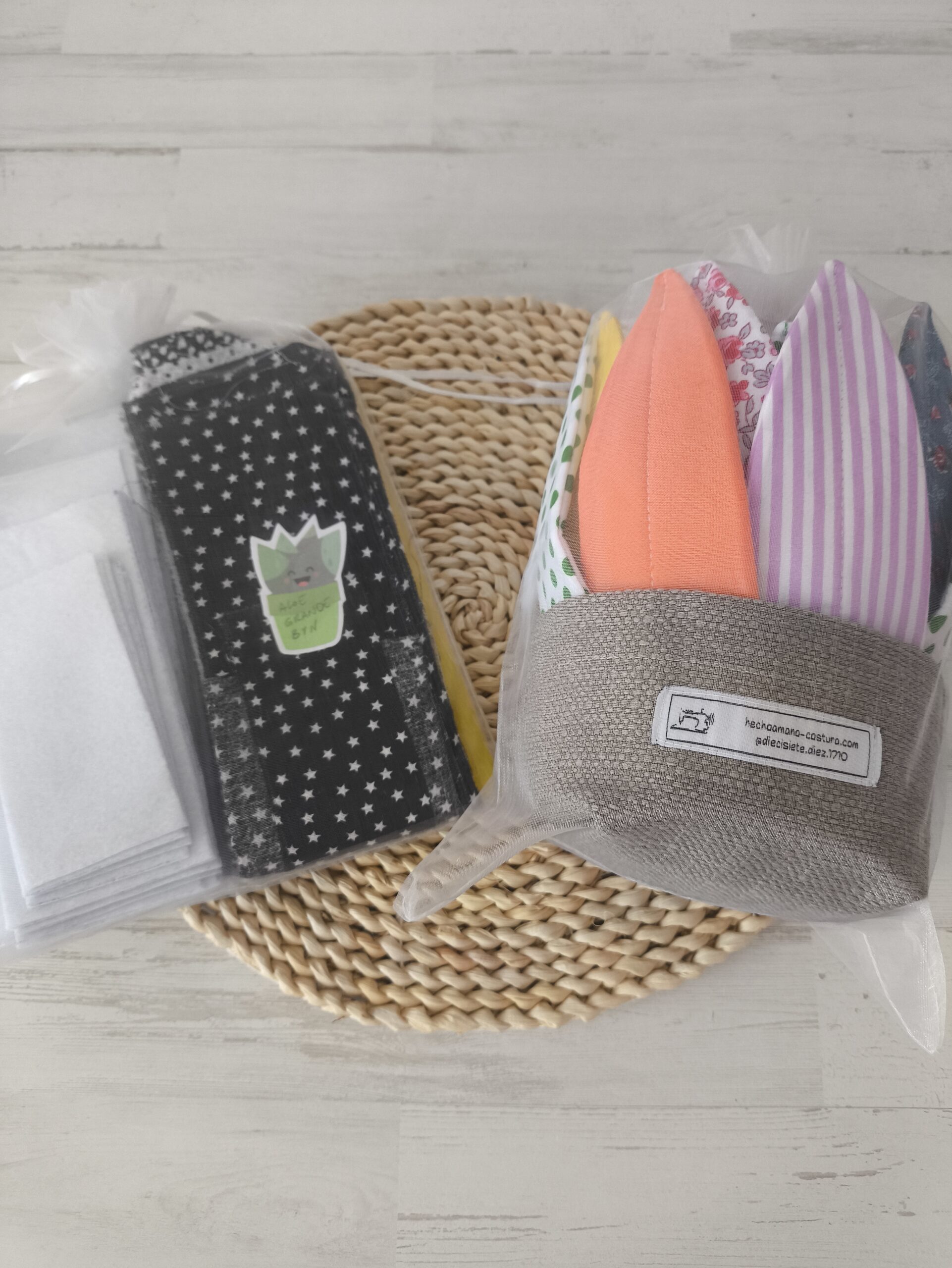 Se incluye: telas para planta y maceta, fieltro para el relleno, pajita para dar la vuelta a los pétalos, patrones y guía (a través de código QR).