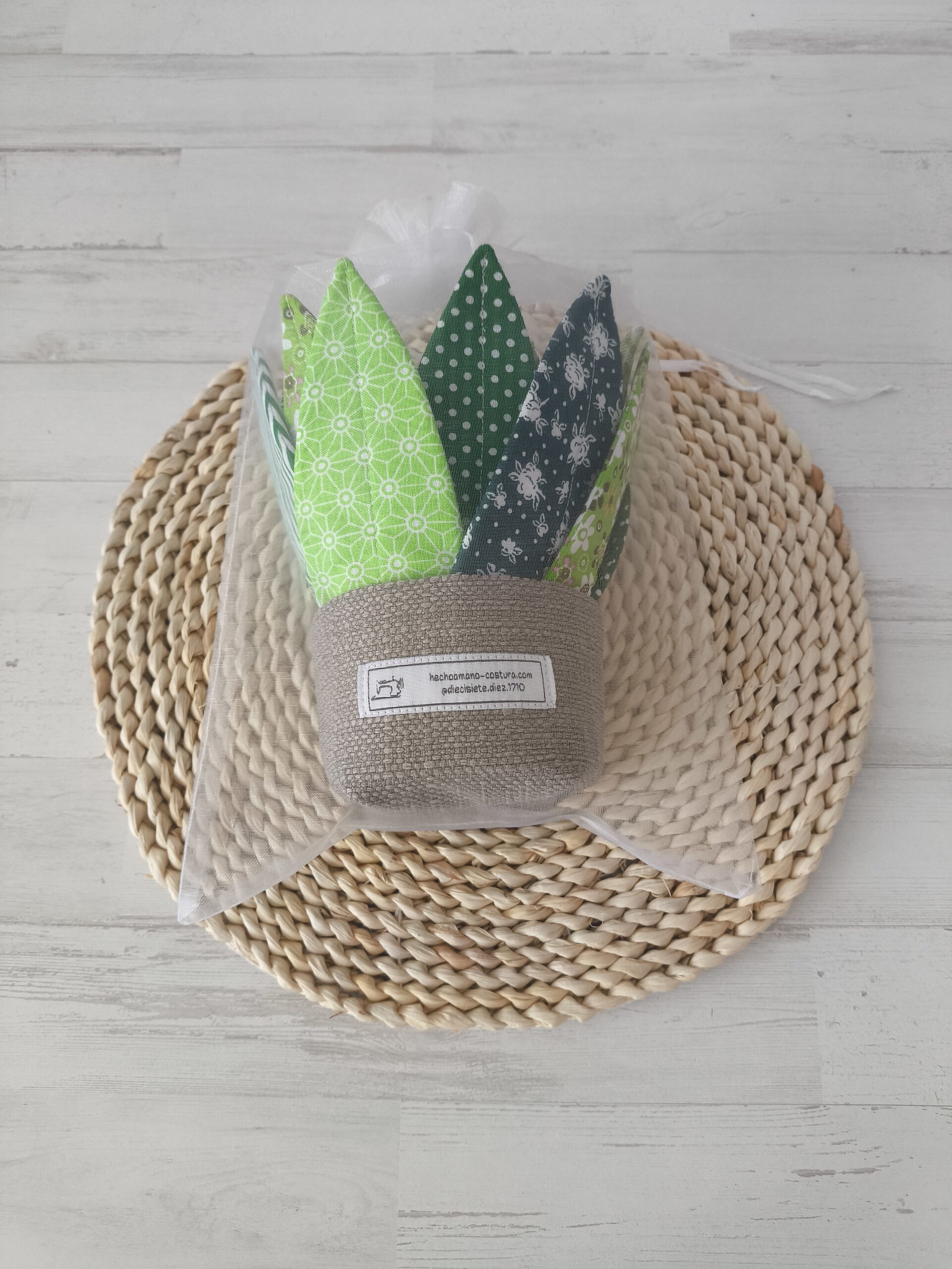 Disfruta de la experiencia de coser un kit de costura y emplea la misma bolsa en la que lo recibes para envolver la planta y regalarla.