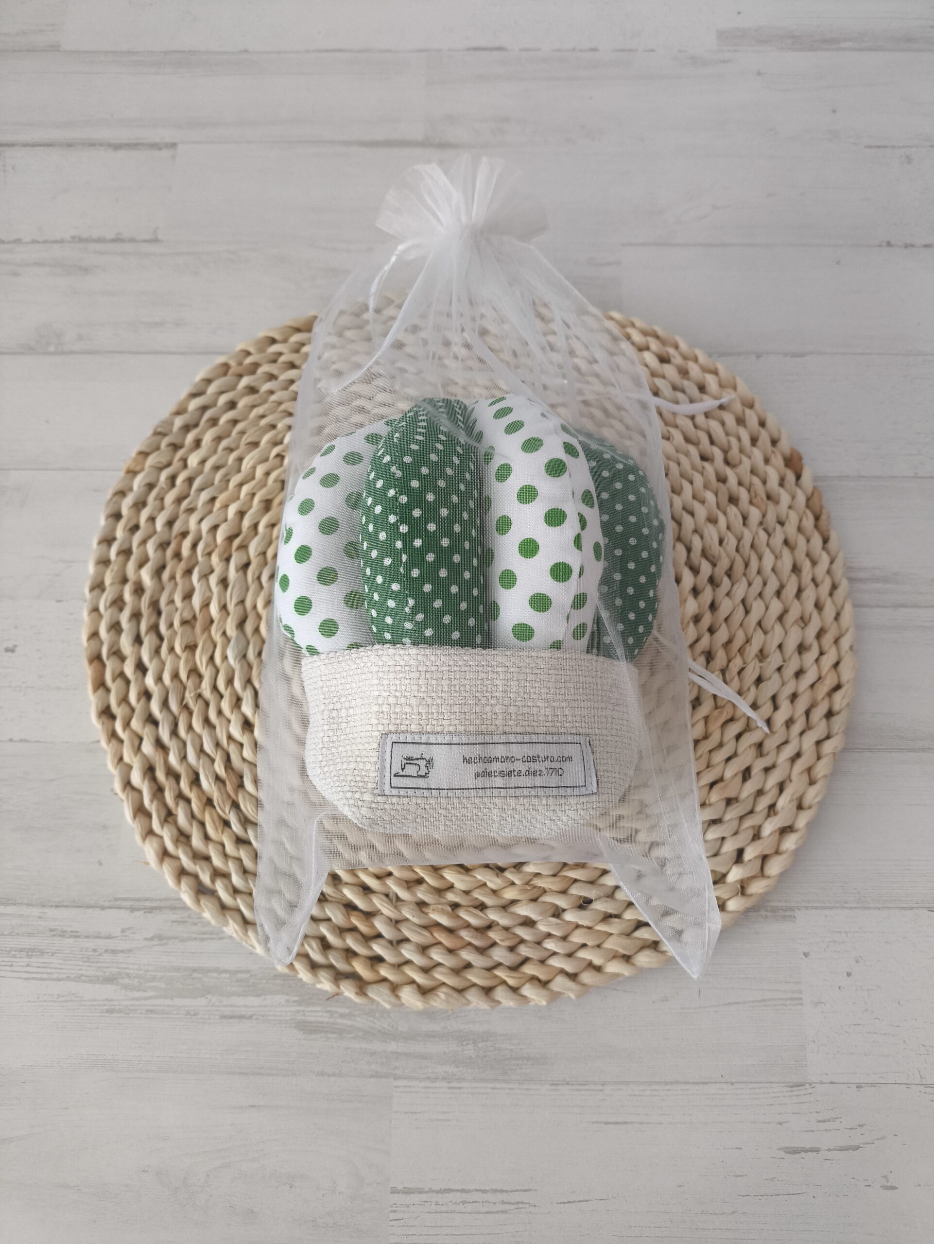 Se incluye: telas para planta y maceta, copos de fibra para el relleno, patrones y guía (a través de código QR).