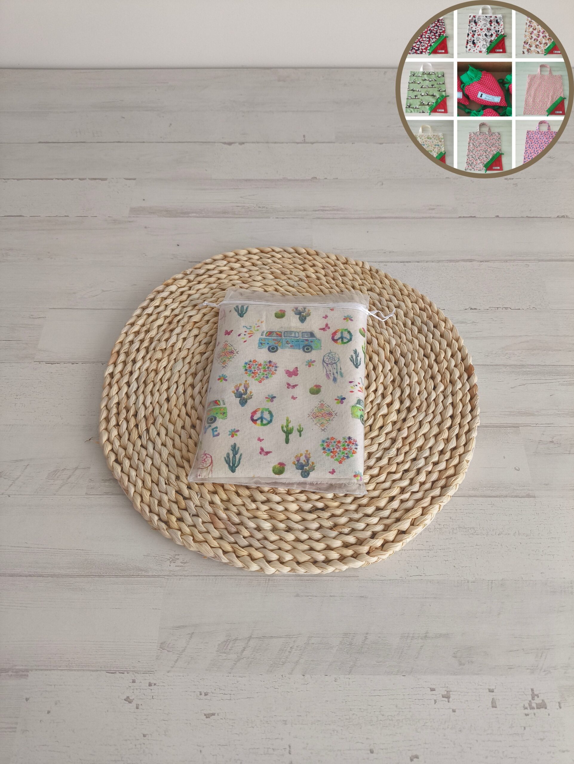 Kit para coser una bolsa fresita hippie.