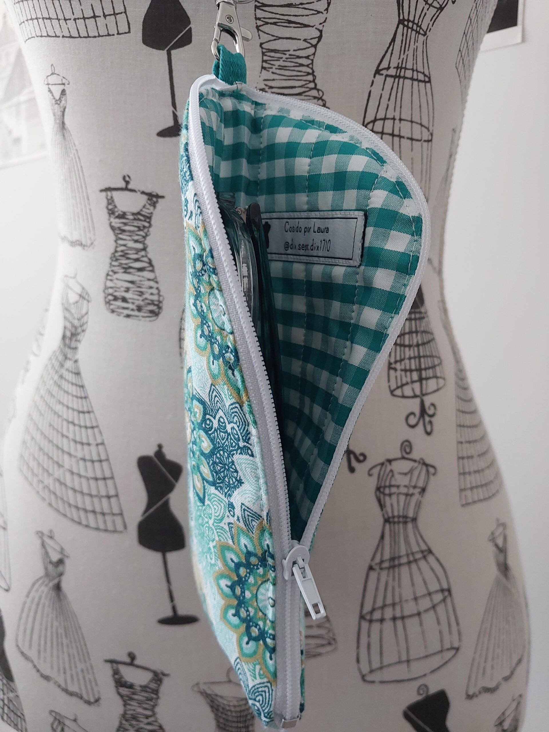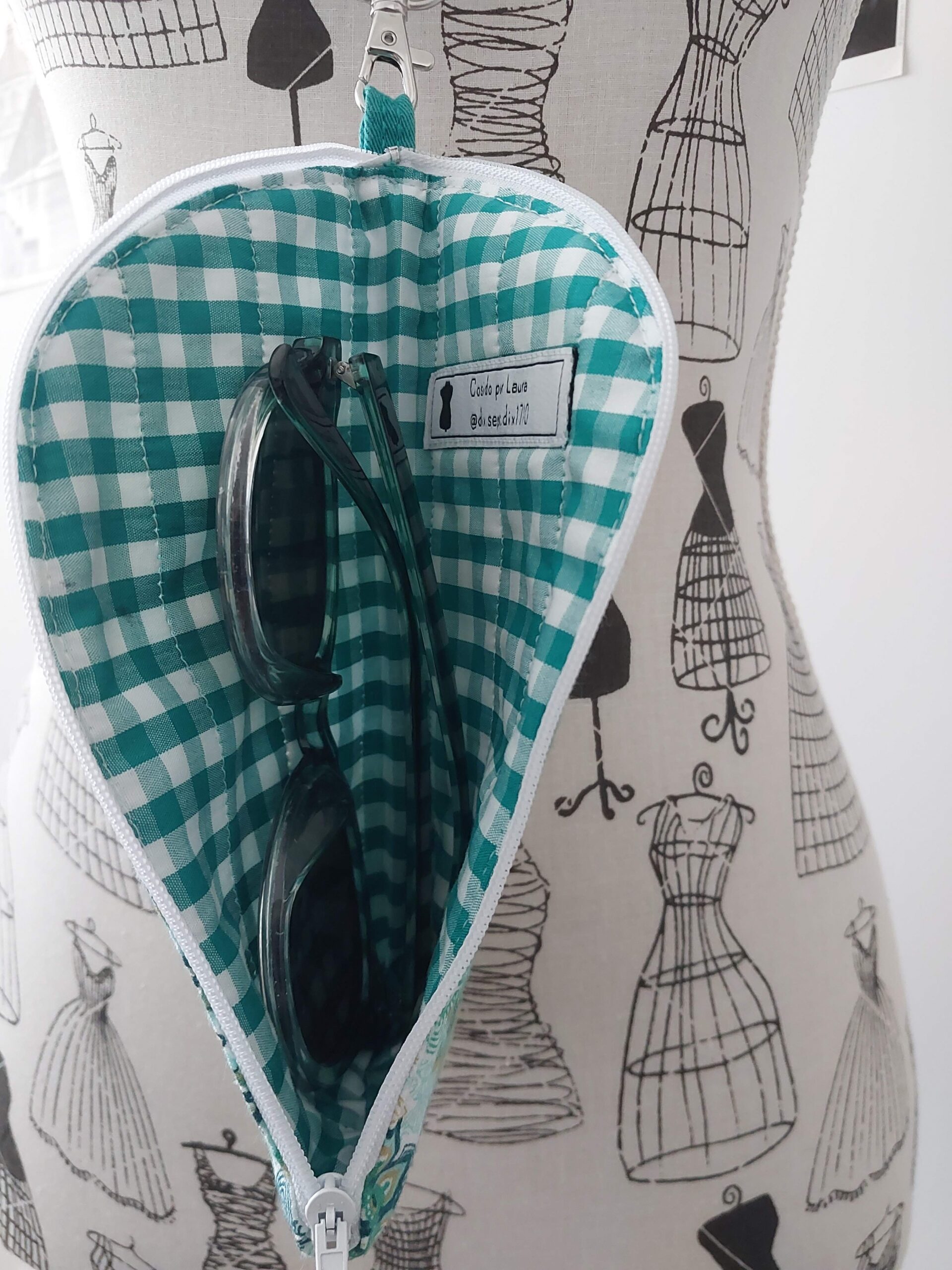 Funda de gafas (o planta carnívora, según lo quieras ver) acolchada con estampado de mandalas y vichy verde al interior. Incluye cinta ajustable para colgar al cuello. Medidas 19 x 8 cm.