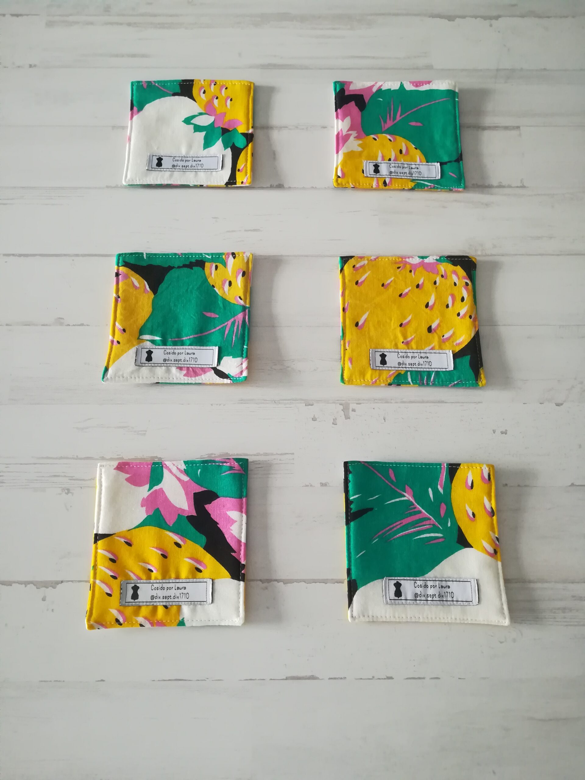 Posavasos verde, amarillo y rosa 6 uds. Medidas 10 x 10 cm.