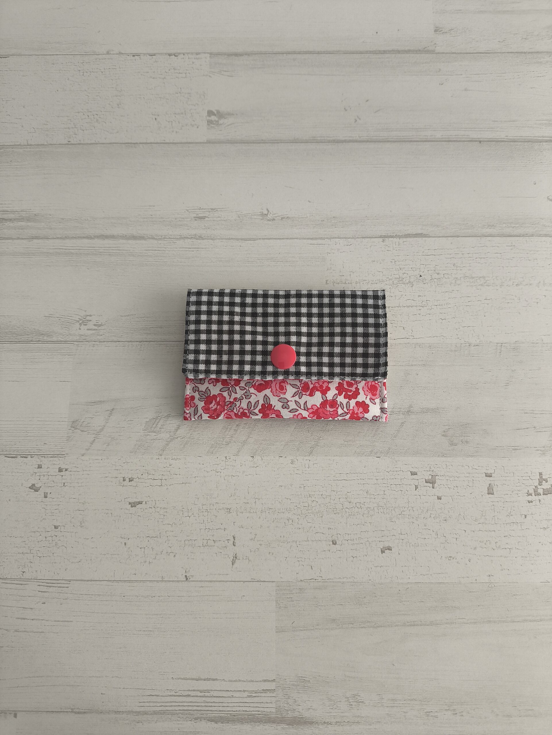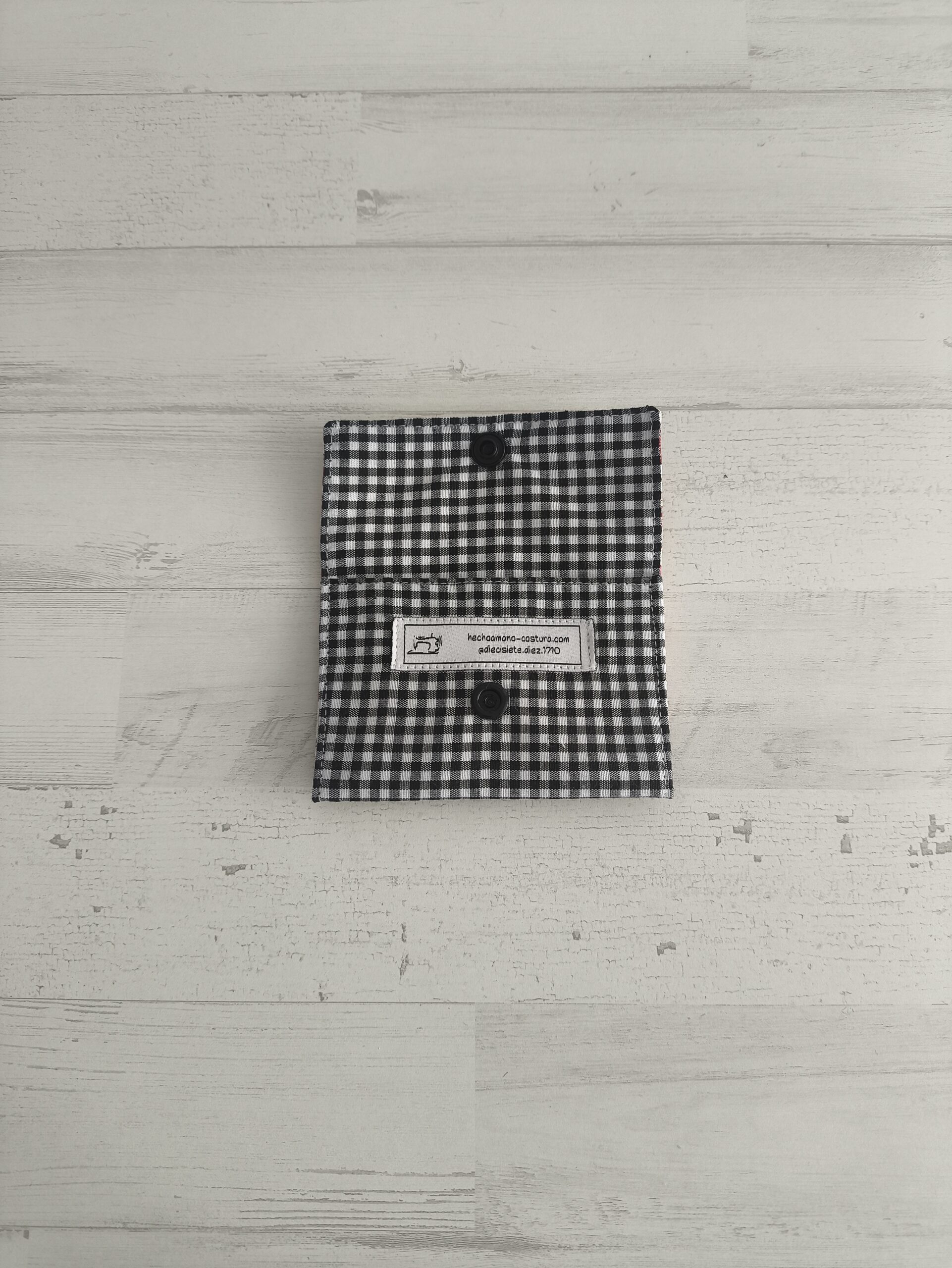 Tarjetero con estampado de vichy y flores. Medidas Tarjetero: 9 x 6 cm.